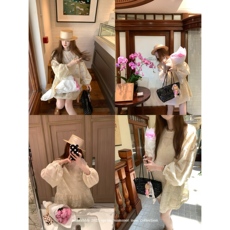 雅乔【难哄】夏季千金风清纯网纱收腰大摆蓬蓬裙中长款吊带连衣裙