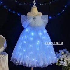 女童爱莎公主裙子夏季正版冰雪奇缘艾沙蓬蓬纱裙儿童会发光连衣裙