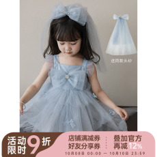 2025夏季新款女童蝴蝶结吊带纱裙韩系儿童公主蓬蓬纱裙礼服连衣裙