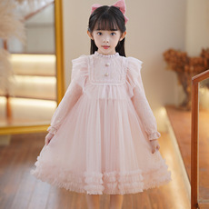 戴维贝拉秋装女童连衣裙儿童长袖网纱裙宝宝洋气公主裙童装蓬蓬裙