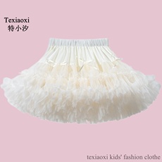 女童芭蕾舞蹈裙儿童舞蹈服松紧腰蓬蓬裙加密网纱裙白色跳舞半身裙