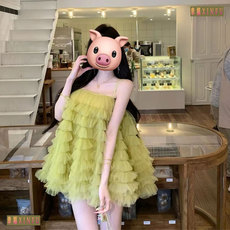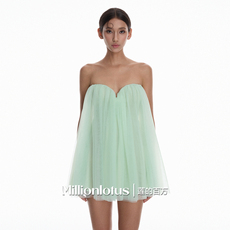 莲的百万 夏日轻氧 薄荷绿抹胸蓬蓬裙 网纱连衣裙