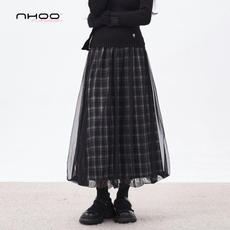 NHOO恩逅 小众设计感格纹网纱裙夏季2025薄款a字蓬蓬花苞半身裙子