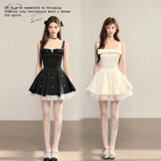 白里 星梦纱舞 法式蝴蝶结无袖挂脖连衣裙女纯欲风网纱蓬蓬A字裙