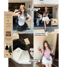 你的懒懒llan【微软奶芙】两色叠层网纱可爱甜美蓬蓬蛋糕裙裙裤女
