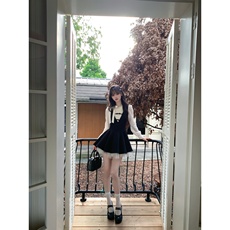 开衫吊带连衣裙两件套女夏网纱甜美小个子收腰设计感花苞蓬蓬短裙