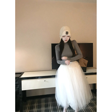 时尚潮品春夏新款明星同款李多海纯色长纱裙A字大摆网纱蓬蓬裙