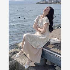 高斯雪岚2025夏新款蕾丝气质两件套连衣裙名媛上衣半身裙25216080