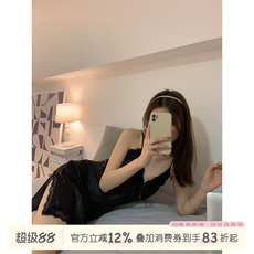 性感睡衣女夏款超火辣黑丝纯欲风深V吊带睡裙冰丝蕾丝网纱家居服