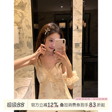带胸垫睡裙女夏款性感高级感居家蕾丝花边镂空网纱纯欲风吊带睡衣