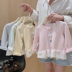 幼悠女童蕾丝花边修身打底衫2025春秋儿童甜美可爱弹柔舒适上衣潮