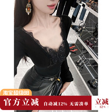 韩系纯欲蕾丝花边德绒打底衫女秋冬季辣妹高级感修身内搭长袖上衣