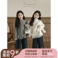 幼悠 女童多层蕾丝花边修身打底衫秋季甜美可爱百搭显瘦长袖T恤潮