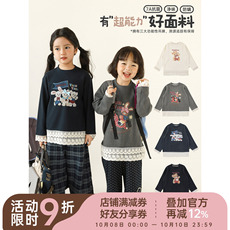幼悠 女童拼接双层蕾丝花边打底衫秋季甜美可爱柔软透气休闲T恤潮