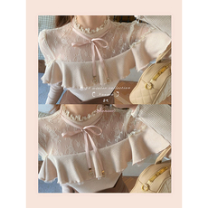 渔小平 心动crush 蕾丝拼接纯欲甜美针织衫女百搭长袖打底上衣