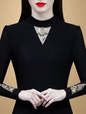 高领黑色金丝绒内搭上衣法式设计感长袖T恤女丝绒拼接蕾丝打底衫