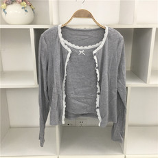 法式温柔风甜美V领蕾丝边针织衫收腰显瘦内搭长袖T恤薄毛衣春打底