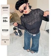 黑色薄款打底衫女内搭秋季新款网纱长袖t恤洋气小衫纱衣蕾丝上衣