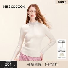气质款花边领蕾丝长袖内搭配开衫针织羊毛衫女修身薄款立领打底衫