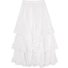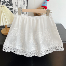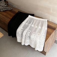 日韩森系少女搭配精美刺绣花朵蕾丝叠穿屁帘四季百搭层次感半身裙