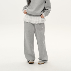 PSO Brand 女装假两件拼接蕾丝休闲直筒灰色卫裤宽松拖地裙裤秋季