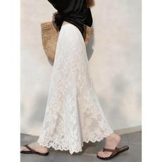 秋季独特设计感别致气质垂坠感白色蕾丝半身裙女高腰显瘦A字长裙