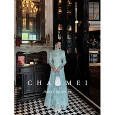 冯(CHAOMEI【矜月】国风新中式女装刺绣短外套+蕾丝连衣裙套装