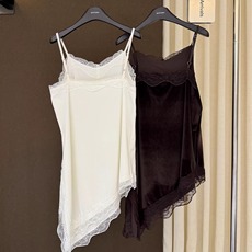 2025夏季新品女装性感风V领无袖丝缎质感蕾丝不对称连衣裙5919200