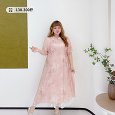 300斤改良旗袍裙胖莹莹特大码女装新中式盘扣气质碎花蕾丝连衣裙