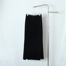 欧洲站2025秋冬新款松紧腰腰头蕾丝侧开叉丝绒半身裙女百搭长裙女