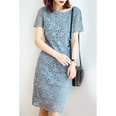 固执夏款女年新款短袖中长款蕾丝连衣裙10832LQ07995