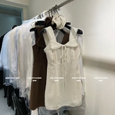 韩系氛围感穿搭白色蕾丝无袖背心连衣裙独特漂亮气质收腰a字长裙