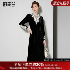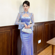 蕾丝长袖宫廷风包臀丝绒连衣裙性感优雅镂空新中式改良鱼尾旗袍裙
