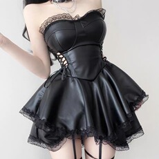 情趣内衣女性感辣妹侧腰镂空绑带蕾丝拼接抹胸紧身连衣裙制服套装