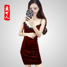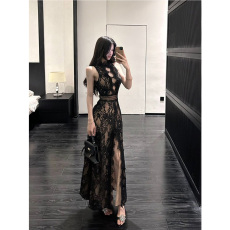 盈可人新款性感蕾丝镂空夜店装复古旗袍侧开叉盘扣无袖大码连衣裙
