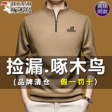 啄木鸟长袖t恤男士半高领拉链立领秋季薄款卫衣男宽松休闲打底衫