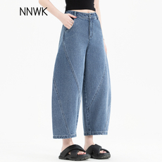 复古七分阔腿牛仔裤女夏季薄款高腰宽松显瘦遮胯小个子八分弯刀裤