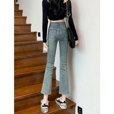 高腰微喇毛边九分牛仔裤女薄款2025年夏季新款显瘦浅色修身直筒裤