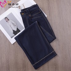国风烟管牛仔裤女夏季薄款2025新款小个子九分裤翻边新中式直筒裤