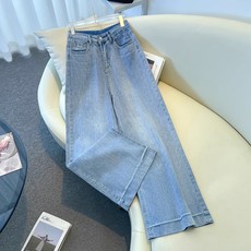 哥家阔腿牛仔裤女2025秋冬新款时尚高腰宽松九分裤浅蓝薄款直筒裤