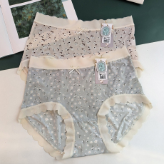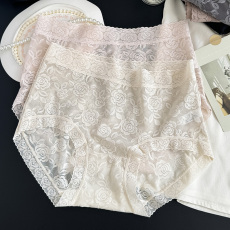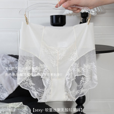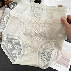 夏季超薄蕾丝无痕内裤女纯欲风性感抑菌加长蚕丝裆中腰女士三角裤