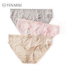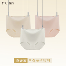 基家60支莫代尔蚕丝裆无痕三角内裤女中腰女式内裤3条装