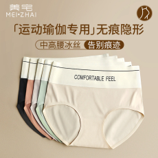 美宅运动瑜伽冰丝高腰无痕内裤女桑蚕丝抗菌裆透气不卷边2025新款