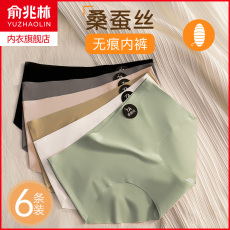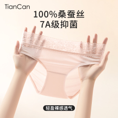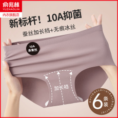 【六条礼袋装】蚕丝抑菌裆内裤女冰丝中高腰蕾丝边透气三角裤头