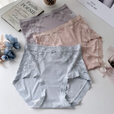 Ufeell中腰蕾丝内裤女性感无痕大码微收腹加长蚕丝抗菌底档三角裤