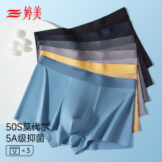 婷美莫代尔男士内裤2024新款桑蚕丝抗菌裆青少年平角裤四角裤无痕