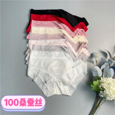 含桑蚕丝 好看性感梦幻纯欲精致女士内裤面膜蕾丝边中低腰三角裤
