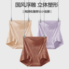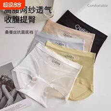 内裤女士蚕丝无痕蕾丝高腰收腹收小肚子提臀冰丝夏季薄款2025新款