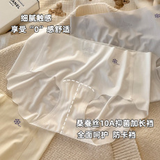 山茶花香氛薄款内裤无痕抗菌女冰丝10A桑蚕丝抑菌加长裆大码不夹p