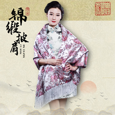 成都特色 蜀绣手工刺绣牡丹花 桑蚕丝盘扣披肩中国风伴手礼送妈妈
